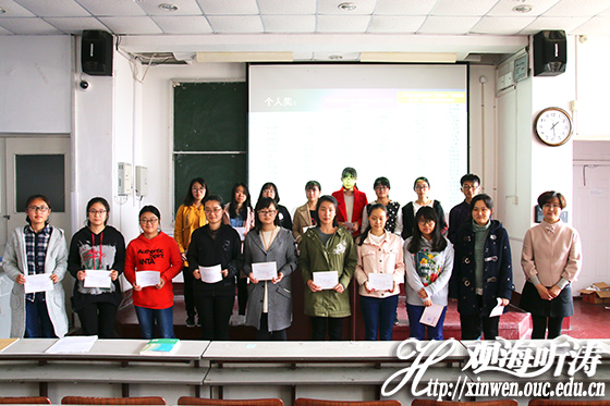 本站讯 4月6日下午,由食品科学与工程学院团委主办的2016-2017学年第一学期行为养成教育“三部曲”总结表彰会于鱼山校区新教学楼顺利开展。出席本次总结会的有食品学院党委副书记何培英、团委老师李想、2016级食品科学与工程1班班主任张朝辉、2016级食品科学与工程2班班主任曹立民、2016级各班班主任助理以及2016级全体本科生。