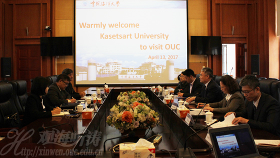 在自由讨论阶段,中国海洋大学水产学院李琪院长、生命学院汪珉副院长、食品科学与工程学院粱兴国副院长分别介绍了各自学院的研究特色和双方开展合作的优势方向。国际合作与交流处副处长、食品科学与工程学院唐庆娟教授专题介绍了“海洋和水产科教中心“的建设模式和人才培养方案等。国际合作与交流处宋文红处长主持了校长会谈。泰国农业大学Shettapong Meksumpun院长、Wanwimol Klaypradit和Kriengkrai Satapornvanit副院长参加了会谈。