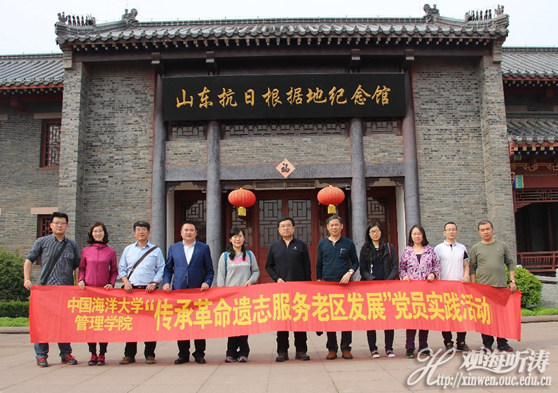 本站讯 4月15日,由中国海洋大学管理学院党委书记王正林、党委副书记许玲玲、营销系主任崔迅教授等11名管理学院教工党员一行来到临沂市莒南县就莒南区域经济发展和革命历史旧址进行考察和学习。