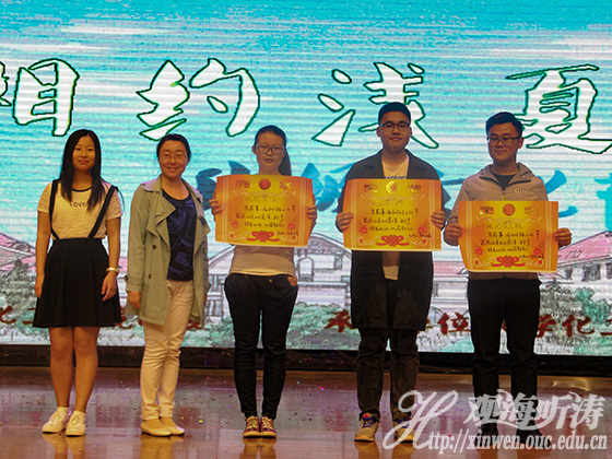 在各个裁判的最终评分下,16级化学二班、化学三班、15级化学二班在此次文化节中获得“最具风采班集体”’称号,16级化学一班获得“达芬奇设计奖”,分别由李新书记和迟瑞娟老师颁奖,并合影留念。