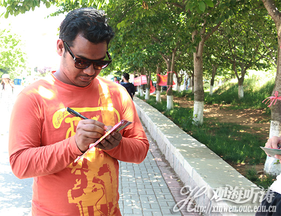 本站讯 5月24日中午,“传递漂流瓶,感恩送祝福”——基础教学中心心理活动周特色活动在崂山校区樱花大道旁举办,吸引了我校包括留学生在内的众多学生参与。