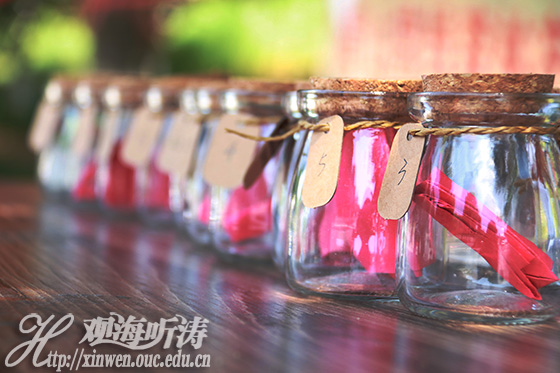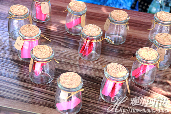 活动一经展开,立即吸引了大批学生前来参与,同学们依次“制作”了属于自己的漂流瓶,并随机带走一个其他同学留下的瓶子。值得一提的是,两名不同国籍的外国留学生也被吸引前来,用自己的语言留下了真挚的祝福。同学们对此活动非常认可,纷纷表示,漂流瓶活动提供了一个畅所欲言的平台,让自己有一个与陌生同学交换“秘密”的机会,而且愿意主动联系自己手中的漂流瓶主人,完成他(她)的心愿或共享心情,并期待着结识拿走自己心愿的小伙伴。