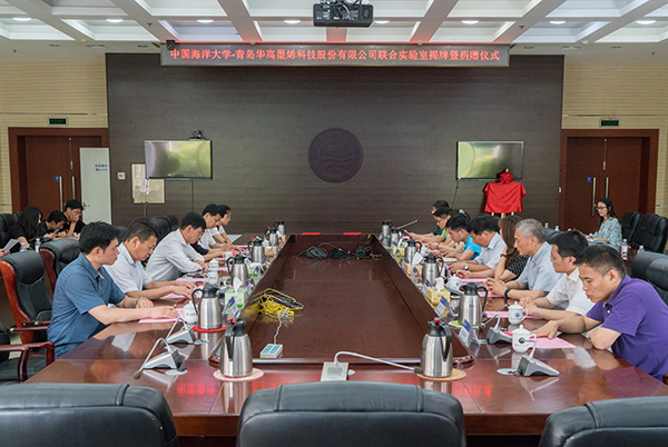 本站讯 6月20日,中国海洋大学、青岛华高墨烯科技股份有限公司(以下简称“华高墨烯公司”)“新型碳材料联合实验室揭牌暨捐赠仪式”在图书馆第一会议室举行。学校党委常委、总会计师王剑敏与青岛国家高新技术产业开发区招商引资总监薛润波共同为联合实验室揭牌。材料科学与工程学院院长王昕与华高墨烯公司董事长施建新代表双方签署共建协议。