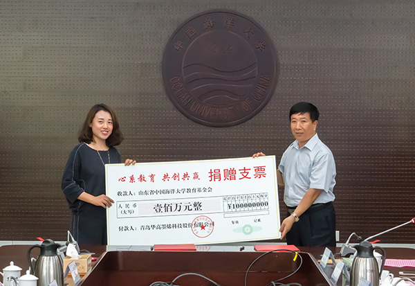 华高墨烯公司向中国海洋大学教育基金会捐资100万元