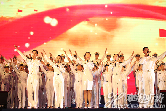 绘梦青春,竞扬帆行远。青春是吹皱映月湖水粼粼波光的阵阵微风,是洒向五子顶旁层层绿树的簇簇阳光,让同学们执一杆青春的画笔,书写斑斓梦想,描绘未来画卷。感谢青春的陪伴,轻叩回忆的窗扉,在今夜的舞台上用最质朴的语言《为你朗读》动人的告白;一部《鱼山旧事》的浓情呈现,表达了海峡两岸学子对伟大祖国的强烈感情和美好祝愿;值此中国共产主义青年团建团95周年、中国人民解放军建军90周年、香港回归20周年的伟大时刻,一曲宏大的音舞诗画《国家》则用深情的言语和歌声抒发着豪迈的家国情怀。学子将胸怀祖国,紧跟时代,为实现海洋强国梦汇聚青春力量。毕业晚会自2008年开始举办至今已走过十年,《十年有你》,一生有你。