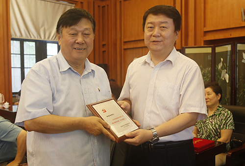 特殊贡献奖获得者、浮山校区退休教职工第二党支部原书记刘政士同志代表受到表彰的优秀党员发言。刘政士表示连续担任党支部书记12年,今年换届退职,虽然不再做支部书记了,但要永远做一个合格的党员,关心支持学校事业发展,永葆党员先进性和纯洁性。