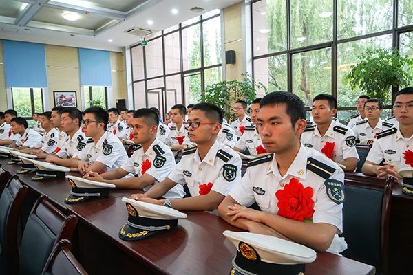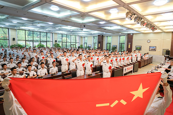 于志刚校长对顺利完成学业的126名国防生表示祝贺,希望他们步入军营之后,按照习近平主席提出的“有灵魂、有本事、有血性、有品德”新一代“四有”革命军人的要求,弘扬“海纳百川,取则行远”的校训精神,坚持追求卓越、敢为人先的雄浑气魄,不畏艰险、探索不已的进取精神,秉持甘于寂寞、十年磨一剑的精神和定力,一切从零开始,从最基础干起,既胸怀远大抱负,又脚踏实地、埋头苦干,要吃得了苦、受得了累、扎得下根,在基层一线的艰苦磨练中不断进步。他希望同学们在日常工作中做敬业爱岗的奉献者、听党指挥的忠诚卫士,在危难时刻做挺身而出的担当者、保家卫国的勇敢战士,为建设强大的海军,为中华民族的伟大复兴作出应有的贡献。