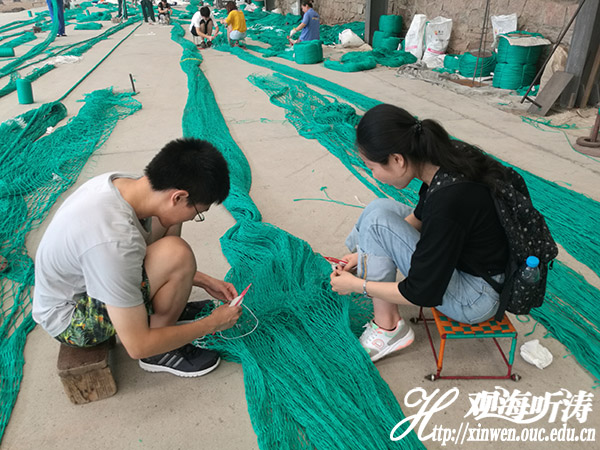 本站讯 7月15日,中国海洋大学赴威海渔具调研团在完成为期三天的调研工作后返回青岛,结束本次暑期“三下乡”调研活动。为期三天的调研活动中,团队成员亲赴威海好运通网具科技公司进行参观,并亲自参与公司的网具生产过程中,并与公司负责人对公司销售、创新研发及人才引进等方面进行交流。