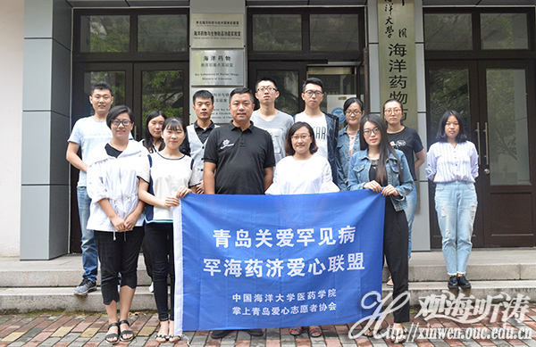 本站讯 8月30日下午,青岛关爱罕见病罕海药剂爱心联盟成立仪式于医药学院药物楼A楼进行,出席本次成立仪式的嘉宾有掌上青岛爱心志愿者协会会长兼党支部书记张旭,中国海洋大学医药学院党委副书记孙娜以及罕海药剂团队的成员们。