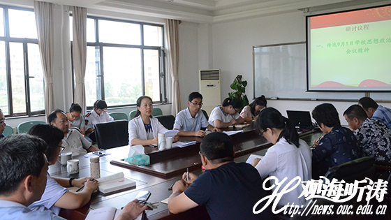 本站讯 为部署新学期思想政治工作和进一步贯彻落实学校思想政治工作会议精神,9月6日下午,数学科学学院党委思想政治工作研讨——学院党委中心组(扩大)学习会在学院会议室召开。学院党委书记庄岩,院长谢树森出席会议,学院党委委员、教职工党支部委员和学院教师代表参加会议,会议由学院党委副书记刘中华主持。