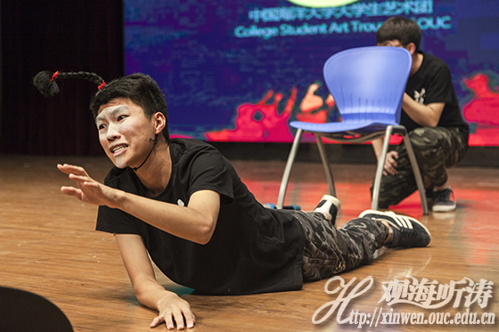 掌声不断,高潮迭起。观众还未曾激情的歌声中回味出来,研究生带来的舞蹈《Ain’t My Fault》又为同学们奉献了一场视觉上的豪华盛宴。舞者在优美的音乐中一人独舞,色彩绚丽的舞台灯光下舞者精致的妆容性感的舞姿尽显。舞者好似沉醉在这迷醉的音乐中,而现场的观众甘愿与她一同沉沦。灯光在舞者的灵活的身体上游走,乐符随着舞者精彩的舞姿跳动。舞毕,一片寂静后全场狂呼,掌声雷动。在掌声中,由大一新生带来的小品《我家孩子叛逆期》与观众见面,三位小演员通过惟妙惟肖的表演、层出不穷的金句、贴近校园的包袱为晚会增添了许多欢声笑语。