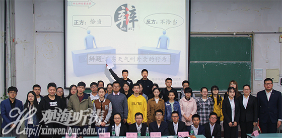本站讯 为丰富大学生课余生活,积极响应“青年之声”的号召,10月14日晚,由海洋地球科学学院(以下简称“地院”)团委主办,地院学生会承办的新生辩论赛决赛在第八教学区精彩上演。本次对战双方均为2017级地院新生,双方就“恶劣天气叫外卖的行为是否恰当”展开了激烈辩论。此次辩论赛的评委有地院副主席杨雪,校辩论队特邀点评嘉宾、校辩论队优秀辩手,环境科学与工程2015级领队张子琰,校辩论队优秀辩手、文学新闻与传播学院2015级领队奚杰,校辩论队优秀辩手、地院辩手逄天泽,地院辩论队领队周仕杰,地院学生会学术部部长以及各兄弟院系辩论队领队及学术部代表。最终,正方赢得了此次辩论赛的胜利,最佳辩手为正方四辩陈家辉。