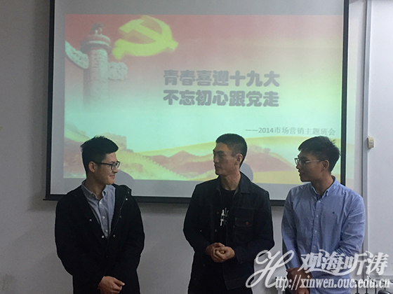 临近毕业,2014级市场营销支部的同学们都在为工作实习、考研出国忙碌。为了能够让更多同学参与其中,班长刘园提前就本次会议的主题、时间、内容充分调研,努力找出“最大公约数”。“我们一起回顾党的历届代表大会,学习十九大的相关背景内容、代表选举流程,还一同观看了《不忘初心 继续前进》。毕业在即,大家都很珍惜为数不多相聚的机会,畅谈青春理想、共话同学情谊,在温馨、活泼、正能量的气氛中迎接党的十九大胜利召开。”