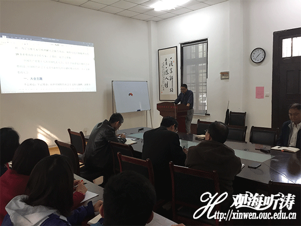 本站讯 10月19日,食品科学与工程学院党委组织全体教职工在鱼山校区六二楼会议室进行了党的十九大报告的学习,党委书记辛华龙做宣讲。