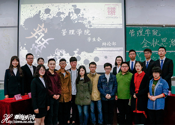 本站讯 10月21日晚,由中国海洋大学管理学院团委主办、管理学院学生会承办的中国海洋大学新生辩论赛决赛在第八教学区顺利举行。本次比赛的辩题为“虚拟社交网络流行对青年人成长的利与弊 ”,正方为“祥轩书韵”队 ,反方为“大排头”队。