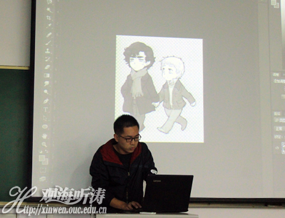 在初步了解了新闻稿的写作后,地院学生会宣传部部长方启昂向同学们介绍了Photoshop的一些基本操作工具,他进一步说明到可以用这些工具去弥补因拍照失误等原因产生的缺陷。接着,他运用这些工具为同学们现场演示了如何运用抠图技术,获取心仪图片的过程。之后,他还通过将不同的图片进行裁剪与拼接,创作出一张具有新意境的图片,让在场的同学们跃跃欲试。