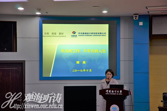 郭增卿先生从组织结构、人力资源、主要业务等7个方面综合介绍了其所在的浙江华东建设工程有限公司,阐述了企业在海洋事业方面所面临的新挑战以及对高端专业人才的渴求,勉励同学们珍惜大学时光,奋勇有为。