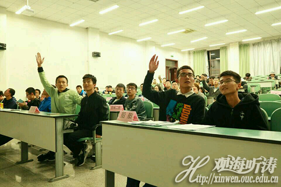本站讯 11月9日晚,由工程学院团委主办、工程学院研究会承办的“坐观天下事,对话时代之声”时政知识竞赛于教学区举办。出席本次时政知识竞赛的嘉宾有工程学院兼职辅导员李琳、孙德成,工程学院海洋工程系研究生党支部书记巩艺杰,海洋工程系本科生党支部书记赵翊翔,工程学院研究会副主席刘浩。参赛选手是由工程学院2017级本科生各班推选出的9支代表队组成。