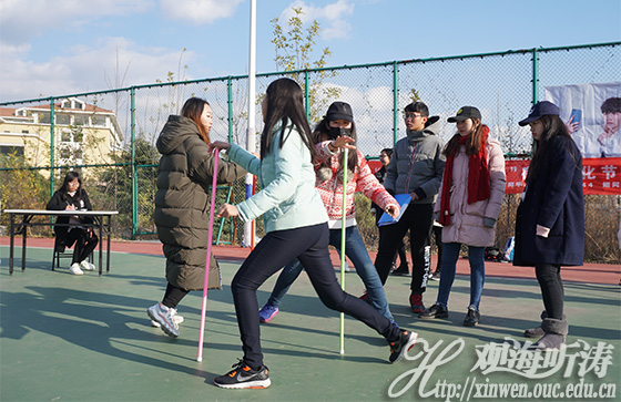 11月18日,宿舍文化节第三环节——宿舍对对碰在中国海洋大学崂山校区南区篮球场顺利举办。本次活动共有四个小环节,分别是不倒森林、超级大闯关、吸管运输和气球大战。首先进行的是不倒森林,每个队每人手持一根塑料棒并围成一个圈,用手握住塑料棒一头将其立与地面上,在塑料棒不倒的情况下迅速向前移动,并用手握住前面队友的塑料棒,使其不倒。这个游戏正是考验大家团队配合度的时候,每个人的注意力都是高度集中,眼睛牢牢的盯着队友手中的塑料棒,手上的动作丝毫不敢怠慢,生怕出现错误。他们精彩的表现也引来了大家的阵阵欢笑声。