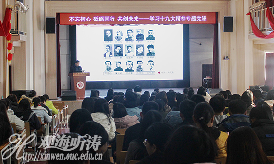 本站讯 12月7日下午,为了深入学习贯彻党的十九大精神,文学与新闻传播学院党委举行“学习党的十九大精神”专题党课。文学与新闻传播学院党委书记蒋秋飚作题为“不忘初心,砥砺同行,共创未来”的报告,文学与新闻传播学院学生党员、入党积极分子、学生干部及机关党支部全体党员参加了此次报告会。