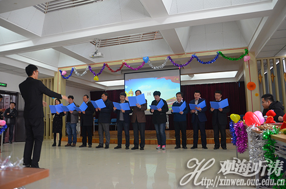 本站讯 12月29日下午,工程学院2018年教职工元旦茶话会在学院学术报告厅举办。中国海洋大学副校长李华军及学院全体教职工出席茶话会。茶话会主持人由学院教师代表于立伟和李碧依担任。