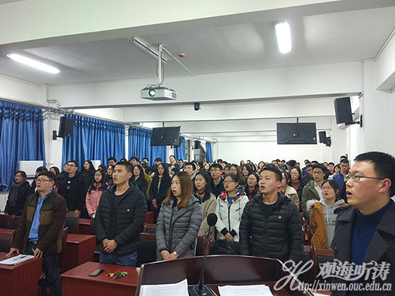 本站讯 3月5日晚,中国海洋大学“青年马克思主义者培养工程”培训班开班仪式在经济学院院楼举行。经济学院团委书记蓝雷波,团委副书记陈昌昀、宋平平、韩胜好出席开班仪式,经济学院150余名学生骨干参加本次会议。会议由团委书记蓝雷波主持。