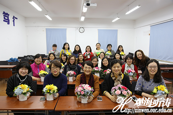 本站讯 阳春三月,春暖花开,“三•八”国际劳动妇女节如期而至。为丰富女教职工的文化生活,陶冶女教职工的情操,3月12日中午,水产学院在鱼山校区档案馆组织全体女教职工开展“三八”妇女节插花艺术比赛。学院党委副书记、妇委会主席王伟莉参加此次活动,并给女教职工们送上节日祝福与问候,大家倍感温馨。