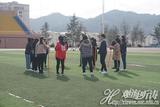 本站讯 3月17日上午,经济学院“青年马克思主义者培养工程”培训班素质拓展活动在崂山校区东区体育场举行。经济学院团委书记蓝雷波,团委副书记陈昌昀、宋平平、韩胜好,经济学院“青马工程”培训班全体成员参加本次素质拓展活动。所有参赛者分为六个组展开较量。