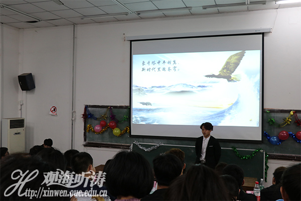 本站讯 4月1日晚,由校自强社主办、海洋生命学院自强社承办的超级演说初赛于鱼山校区化学馆举办。本次演讲的主题是“象牙塔中丰羽翼,新时代里遨苍穹”。本次大赛评委由辅导员孙朋,兼职辅导员孙贵东、葛照硕,校自强社社长贾田畅,院学生会代表鲁徐航、华元瑞,往届优秀选手张宜良担任。参赛者共有六名,分别是高亚楠(2016级生物科学),周钰昌(2016级生物技术),何乐乐(2016级生态学),樊昊(2017级生态学),李青蕾(2017级生态学),徐惠中(2017级生物技术)。