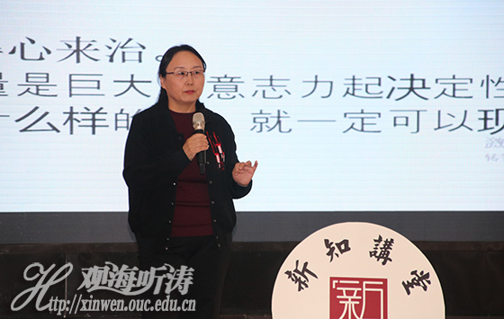 本站讯 3月30日下午,文学与新闻传播学院在文新楼举行“走出抑郁,闪耀人生”讲座。国家一级作家霞子老师做客新知讲堂,围绕“抑郁是什么”、“抑郁从哪里来到哪里去”、“科学思维1+2”和“让生命之花怒放”四个方面展开讲解与讨论。