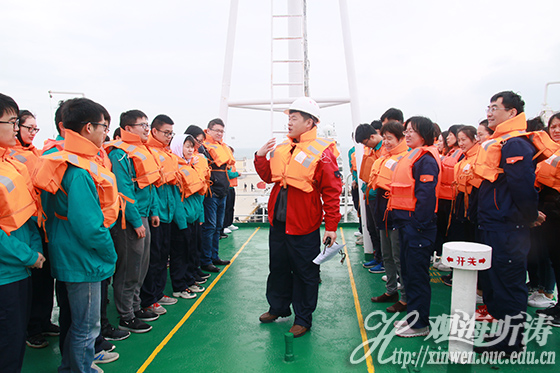在课余时间,同学们还进行了驾驶室、海图室及船载海洋调查仪器室的参观,了解了航海及海洋调查知识。同时,为了提升学生的安全意识和应对海洋灾难的能力,我们安排了安全教育及救生演习,为实习的安全进行提供保障。