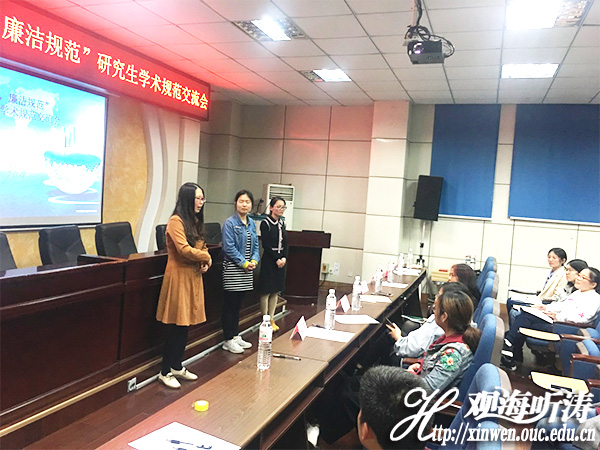 本站讯 5月10日晚,由医药学院党团委主办、研究生会承办的第七届“求真务实,廉洁规范”研究生学术规范交流会在鱼山校区药物楼B楼举行。出席本次交流会的特邀来宾有医药学院副院长李筠、医药学院团委书记王小峰以及医药学院研究生会主席詹娜,学生嘉宾有单慧(2015级微生物与生化药学博士)、史婷(2016级药物化学博士)、李红霞(2015级制药工程硕士)。