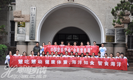 在本届“全民营养周”期间,中国海洋大学食品科学与人类健康实验室的师生积极响应“全民营养周”的号召,向营养学会提出校园宣传活动申请并获得了营养学会的支持,于5月13至19日在中国海洋大学鱼山校区悬挂“中国营养学会全民营养周”横幅,开展丰富多彩的科普活动。