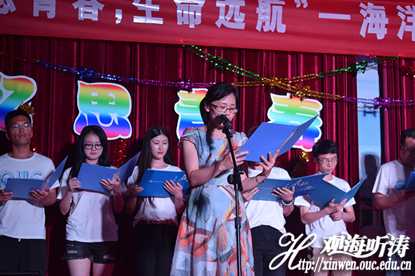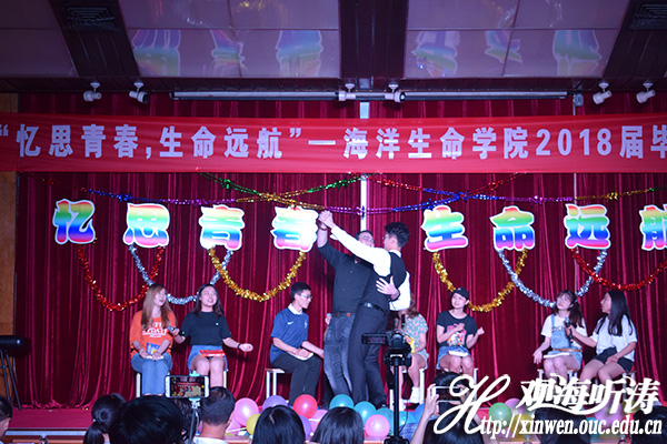本站讯 6月21日晚,由海洋生命学院团委主办,海洋生命学院学生会承办的“忆思青春,生命远航”2018届毕业晚会在鱼山校区逸夫馆多功能厅拉开序幕。党委副书记于杰,团委书记曹少鹏、团委副书记李靓、伍玥琪,团委辅导员孙朋以及海洋生命学院2014级班主任出席晚会。