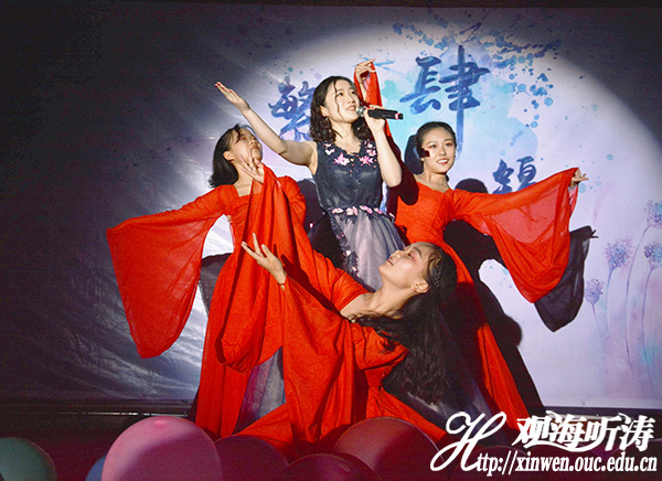 同行致远,临别前要各自珍重。四年里的师恩难以忘怀,老师对同学们同样充满不舍之情。高凤老师、徐宾铎老师、耿学晨老师和马亚宸老师和几位毕业生一起朗诵诗歌《今天,我们毕业了》,“我们相遇在最好的流年……同学们,不管你们走多远走多久,都不要忘记海大。”老师们的深情叮咛另观众们感慨万千,只盼岁岁年年之后,不要忘记鱼山校区的丹桂,十里飘香。歌曲串烧《一生有你》唤起了同学们的离别之情。最后,二人合唱《你被写在我的歌里》,歌者眼神交汇,含情脉脉,观众们意犹未尽。