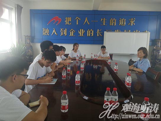 7月13日,调研团8位成员从青岛出发,并于下午成功抵达莱州明波水产养殖公司。公司办公室主任王晓梅的热情接见了成员们,同时她就公司发展的概况、养殖品种类、经济鱼市场价值以及循环养殖技术研发等方面和我们进行了介绍。在此期间大家积极提问,对于我们的困惑王主任也热心地进行回答。第一次接触到养殖生产的一线,一张张洋溢着青春气息的脸庞满是欢喜,疑问的解决更加坚定了大家做好任务、积极实践的决心。