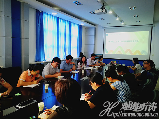 本站讯 8月23日下午,为了迎接即将到来的新学期,更好地投入到新学期的工作中,化学化工学院举办2018年新学期班主任会。化学化工学院党委书记王玉江,副院长夏树伟,党委副书记李新,辅导员迟瑞娟、李思潼、黄晨及全体班主任参加了此次会议。