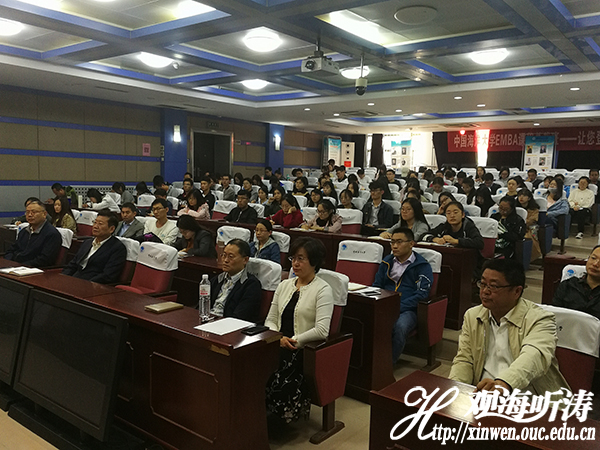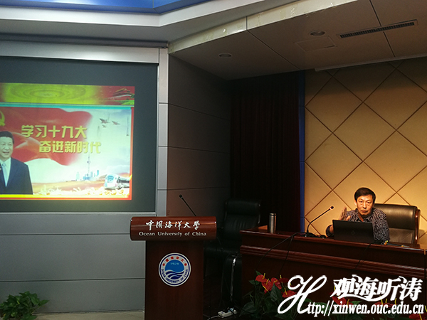 本站讯 10月11日下午,食品科学与工程学院在鱼山校区国际报告厅召开党委理论学习中心组(扩大)专题讲座,本次讲座邀请到原中国海洋大学社科部主任李元峰,讲座题目为《彰显全新风貌,同心戮力圆梦》。学院教师第一党支部、教师第二党支部全体党员和学生党支部党员代表参加专题讲座。讲座由学院党委副书记、副院长何培英主持。