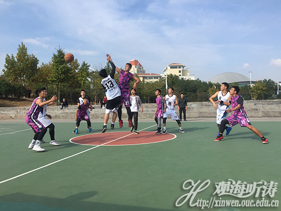 本站讯 10月21号上午,由中国海洋大学基础教学中心体育系主办、校研究生会承办的“校庆杯”篮球赛在崂山校区北区篮球场如期举办。本轮小组赛的对战双方为环境科学与工程学院队与化学化工学院队。经过激烈比拼,环科院队最终以41:37的比分战胜化工院队,赢得本轮比赛的胜利。