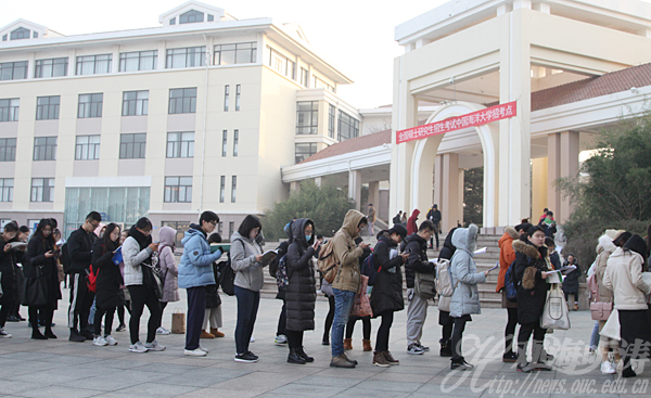 本站讯 2019年全国硕士研究生招生考试于2018年12月22日至23日举行,共有17216人报考中国海洋大学,较去年增长18.7%,其中4194人在中国海洋大学考点参加考试,报考人数和考点人数均创历史新高。考试期间,中国海洋大学考点主考、副校长闫菊,副主考、研究生院常务副院长史宏达陪同山东省招生考试院巡视检查组检查了学校的考试工作,巡视检查组对考务组织工作给予了充分肯定。