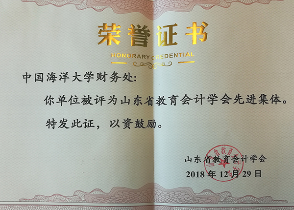 中国海洋大学财务处获山东省教育会计工作“先进集体”称号