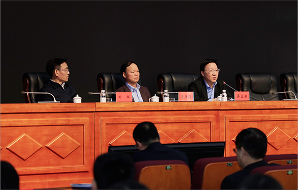 田辉指出,这次全国两会,是在中华人民共和国成立70周年、全面建成小康社会关键之年召开的一次重要会议。要深入学习贯彻习近平总书记重要讲话和十三届全国人大二次会议、全国政协十三届二次会议精神,增强“四个意识”,坚定“四个自信”,坚决做到“两个维护”,加快推进学校一流大学建设。