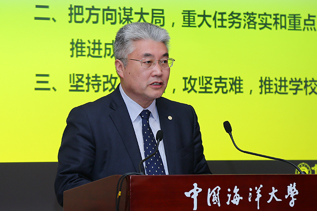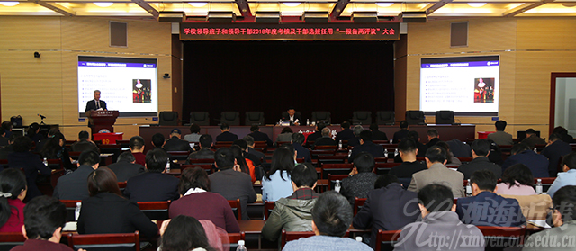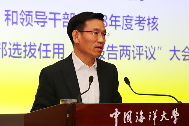 本站讯 3月26日下午,中国海洋大学在崂山校区图书馆第二会议室召开学校领导班子和领导干部2018年度考核及干部选拔任用“一报告两评议”大会。学校党政领导田辉、于志刚、张静、李巍然、闫菊、李华军、王剑敏、吴立新出席会议。