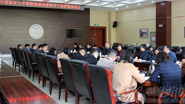本站讯 3月29日上午,中国海洋大学在崂山校区召开新提拔副处级领导干部任前座谈会。党委常务副书记张静出席会议,党委常委、组织部部长丁林主持座谈会。