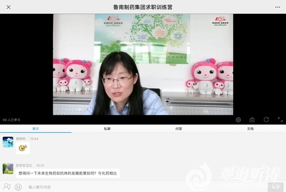 随后,鲁南制药集团经理刘杰通过视频连线方式带领同学们云参观鲁南制药集团新时代药业57车间,该车间为生物制品产业园区,通过参观该车间内超滤、离心、提纯等相关设备,同学们对相关的实验仪器以及工作环境有更加深入了解,有利于同学们明确就业目标和方向,为寻找职业发展道路奠定基础。