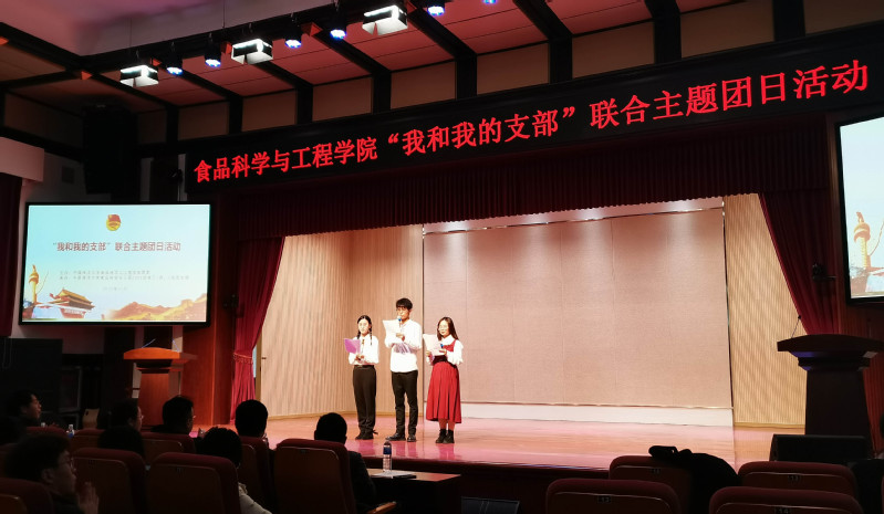 本站讯 为深入学习贯彻党的十九届六中全会精神,进一步激发青年团员爱党爱国之情,11月25日下午,食品科学与工程本科2020级食品科学与工程专业1班、2班团支部在鱼山校区六二礼堂联合举办“我和我的支部”主题团日活动,学院党委副书记、副院长程振明、各班班主任老师、辅导员以及团支部全体成员参加此次活动,学院各团支部代表进行了现场观摩。