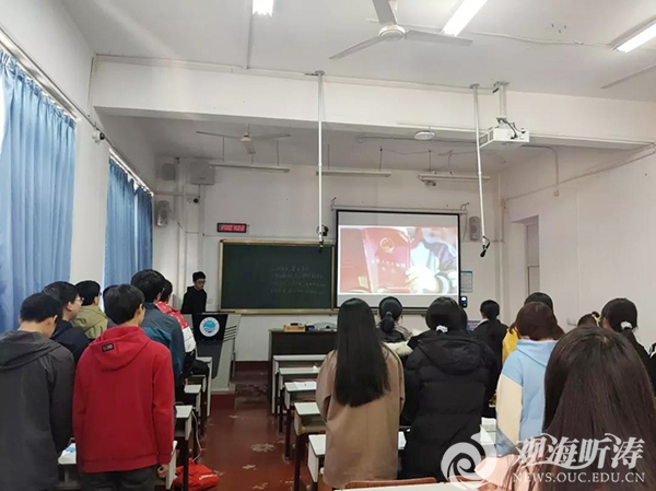 11月25日下午,医药学院2019级药学2班在新教楼102教室开展“国家宪法日法制教育”主题班会暨“宪法宣传周”活动。会上,宋建业为大家介绍了《中华人民共和国宪法》的地位以及重要意义。接下来,同学们一起学习了国家爱宪法日暨全国法制宣传日,并通过学习,体会到了国家宪法日设立的意义。
