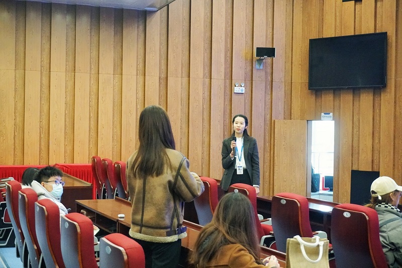 接下来,由赛轮集团HR刘懿宸带领大家来到报告厅。首先,经理带领大家观看了时长5分钟左右的企业介绍视频,让同学们对企业又有了进一步的认识进一步了解赛轮。之后,通过游戏环节,大家的积极性被充分调动。随后,刘经理便开始了正式的企业介绍。本环节经理为我们详细地介绍了企业发展历史、品牌实力、全球布局、科研成果以及企业使命与愿景等,且针对性地介绍了企业员工的发展路径、福利保障、精神激励等企业文化。