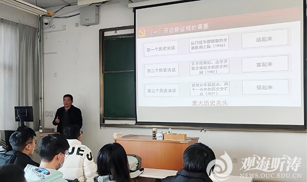 本站讯 12月2日下午,化学化工学院党委书记王玉江为学生党支部书记、支部委员,87名党员发展对象以及化学化工学院研究会成员等百余名同学作党的十九届六中全会宣讲报告,带领青年学生学习贯彻党的十九届六中全会精神,坚定理想信念。