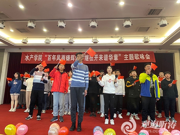 水产学院“百年风雨铸辉煌,继往开来谱华章”主题歌咏会在鱼山校区学术交流中心举办,2021级本科生各团支部用歌声表达爱国主义精神,献唱了《没有共产党就没有新中国》《我和我的祖国》《我爱你中国》等经典红色歌曲。一首首红色经典、一句句时代强音,展现出团结奋进、拼搏进取的精神面貌,每一句歌词都唱出了青年学子的心声,充分表达出坚定跟党走的决心和信心,以及对党的热爱、对祖国的赞美之情。